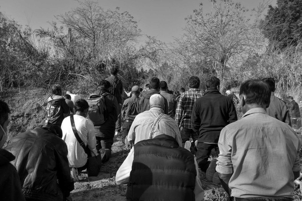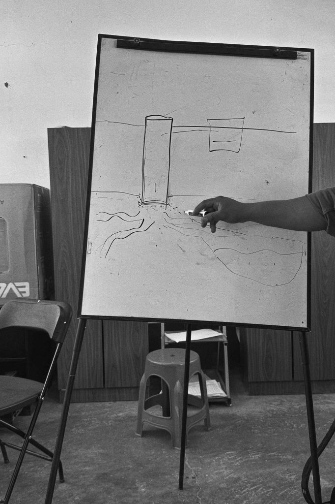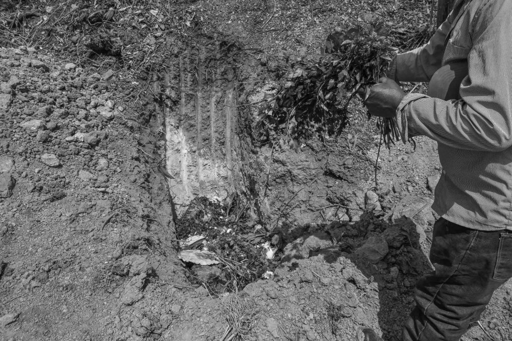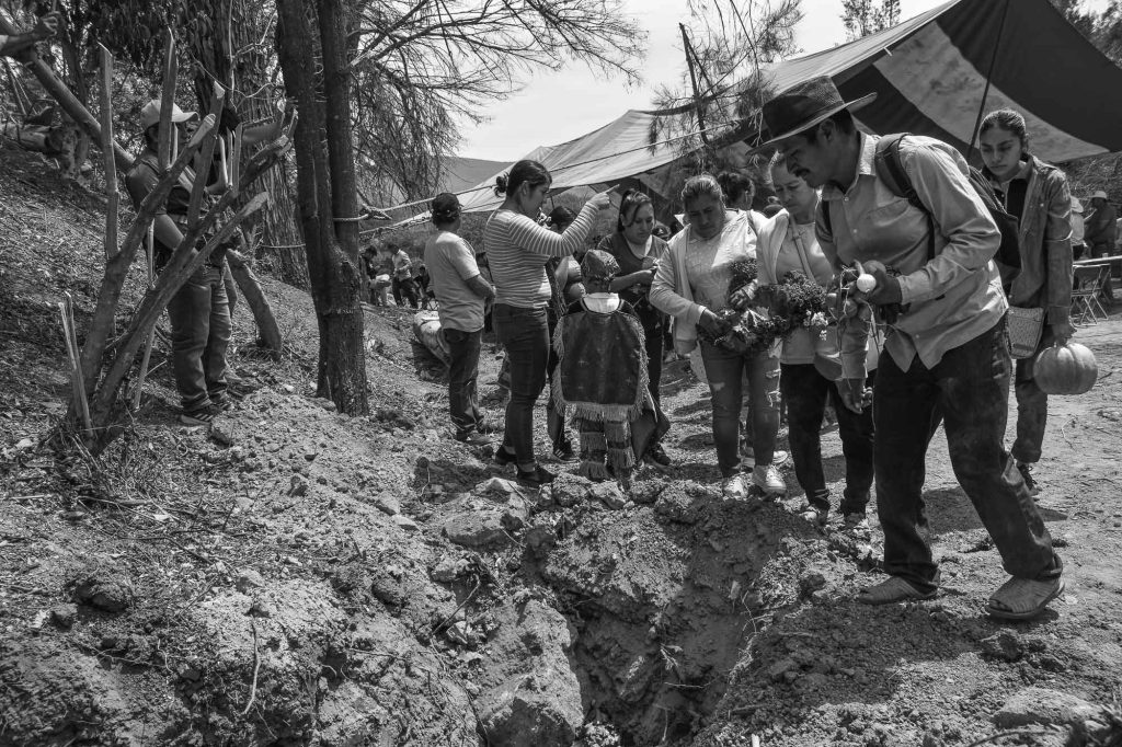 En las mesas de diálogo a las que asistí, así como en las asambleas y en los trabajos colectivos en el campo, la presencia de las entidades del territorio comenzó a adquirir una centralidad palpable. Los cerros y sus moradores, reconocidos como ancestros, eran invocados como interlocutores y partícipes de las decisiones mediante prácticas rituales que acompañaban los procesos técnicos y organizativos. La construcción de un pozo, en varias comunidades, implicaba no solo la ejecución de una obra hidráulica, sino también una ofrenda al cerro y una petición a las fuerzas tutelares que resguardan el agua. Estas acciones, junto con la reorganización de los tequios, reactivaban y consolidaban una forma de autoridad vinculada al territorio.