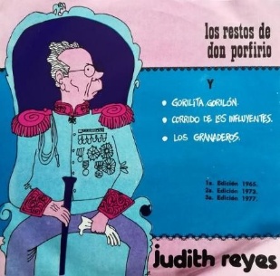 La lírica de Judith Reyes se entiende también como “escritura de la desgracia”, otra dimensión poco estudiada de lo popular. Son elocuentes títulos de canciones como “Tragedia de la Plaza de las Tres Culturas”, “Marcha de los caídos”, “Canción de los desaparecidos”, “Corrido del incendio al campamento 2 de octubre en Iztacalco” o “Lamento Latino”. Escribir para encarar la desgracia y sanar; también para reír y burlarse del represor (“Gorilita Gorilón”, “Los restos de don Porfirio”). Mario Gill complementa esta percepción de la desgracia, una vez que Judith la toma entre sus manos: