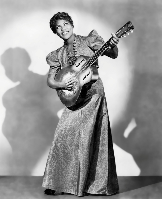 Sister Rosetta Tharpe posando con una guitarra en 1938. Fotografía: James J. Kriegsmann vía Wikimedia Commons.
