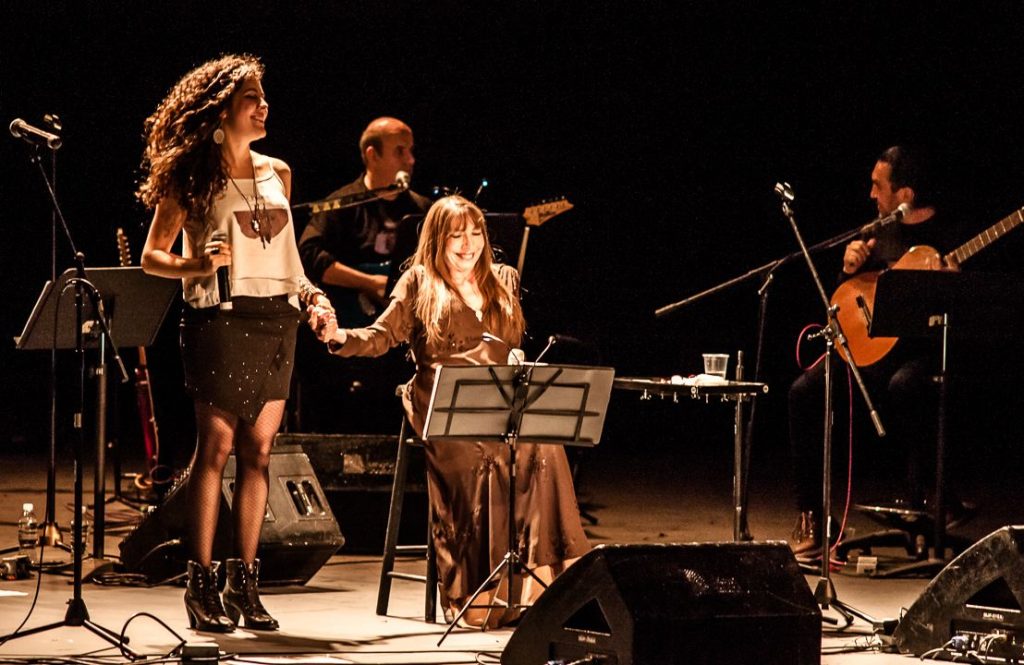 Betsy Pecanins y Nay Stanfield en el Teatro de la Ciudad Esperanza Iris, 23 de Julio de 2016. En las guitarras: Felipe Souza y Jorge García Montemayor. Foto: Rafael Arriaga
