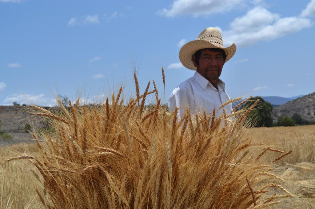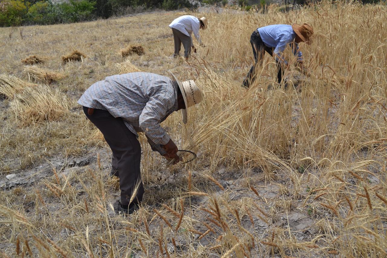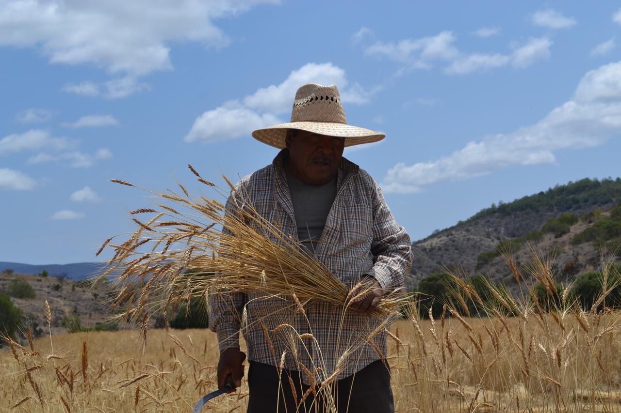 Los suelos de Yanhuitlán se han vuelto menos productivos. Se cosecha lo necesario para el autoconsumo. Don Julio me pide que lo alcance en un paraje delante de “Cruz de Tabla”. Me pide que lleve mi cámara. Entiendo que quiere que registre la actividad de la cosecha del trigo, que la información que se recabe se les haga llegar a los jóvenes que no viven en la comunidad.
