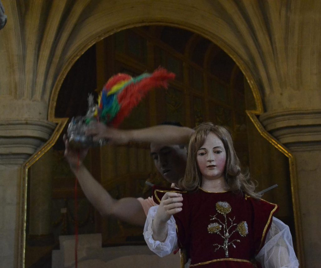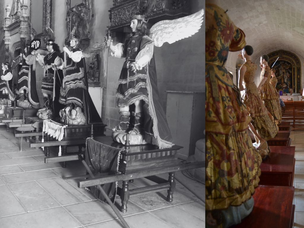 El Sábado Santo, familias del lugar cumplen con la tarea de vestir a los ángeles para la procesión. Estas familias, a lo largo de generaciones, han custodiado las cajas con los atuendos de cada cristo, conservando la responsabilidad de prepararlos para la procesión.