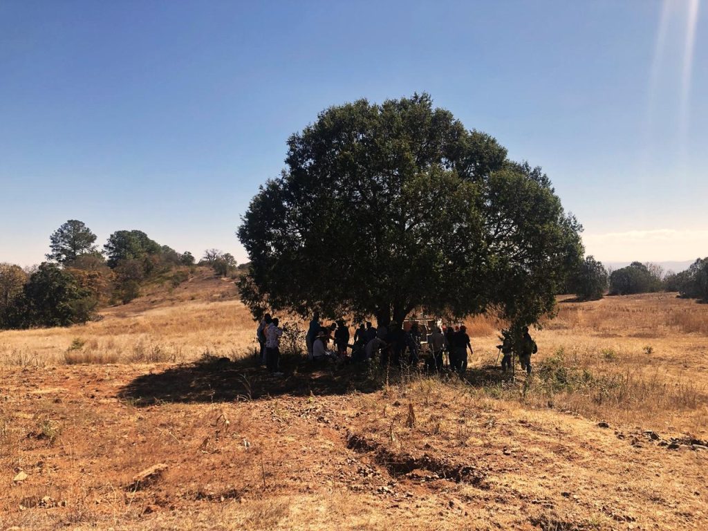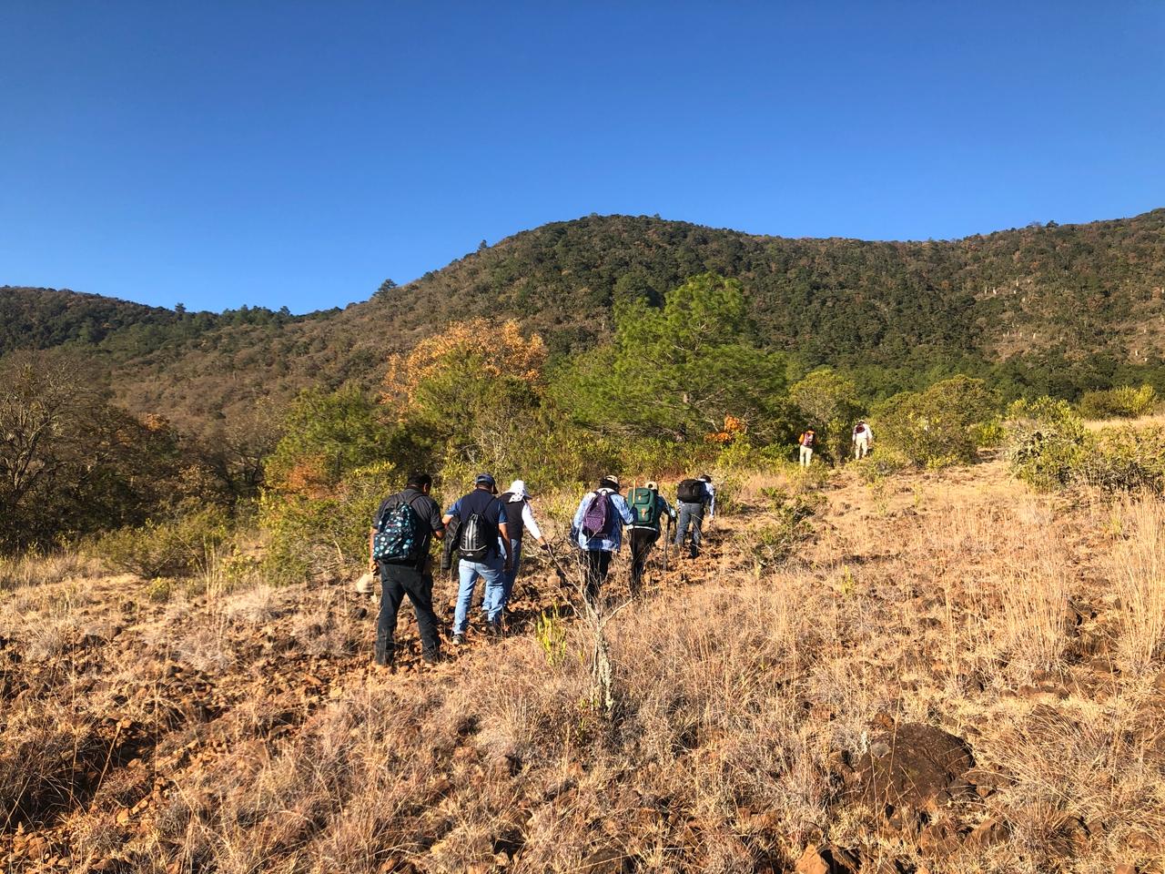 Salimos muy temprano en camioneta hacia el pueblo de Xacañi, hasta llegar al punto en que el cerro nos obliga a continuar a pie. La caminata se vuelve empinada; la hojarasca hace que los pies se resbalen y la vegetación se torna más abundante. Ha pasado tiempo desde que dejamos la última casa del pueblo, y las hojas secas crujen bajo nuestros pasos.